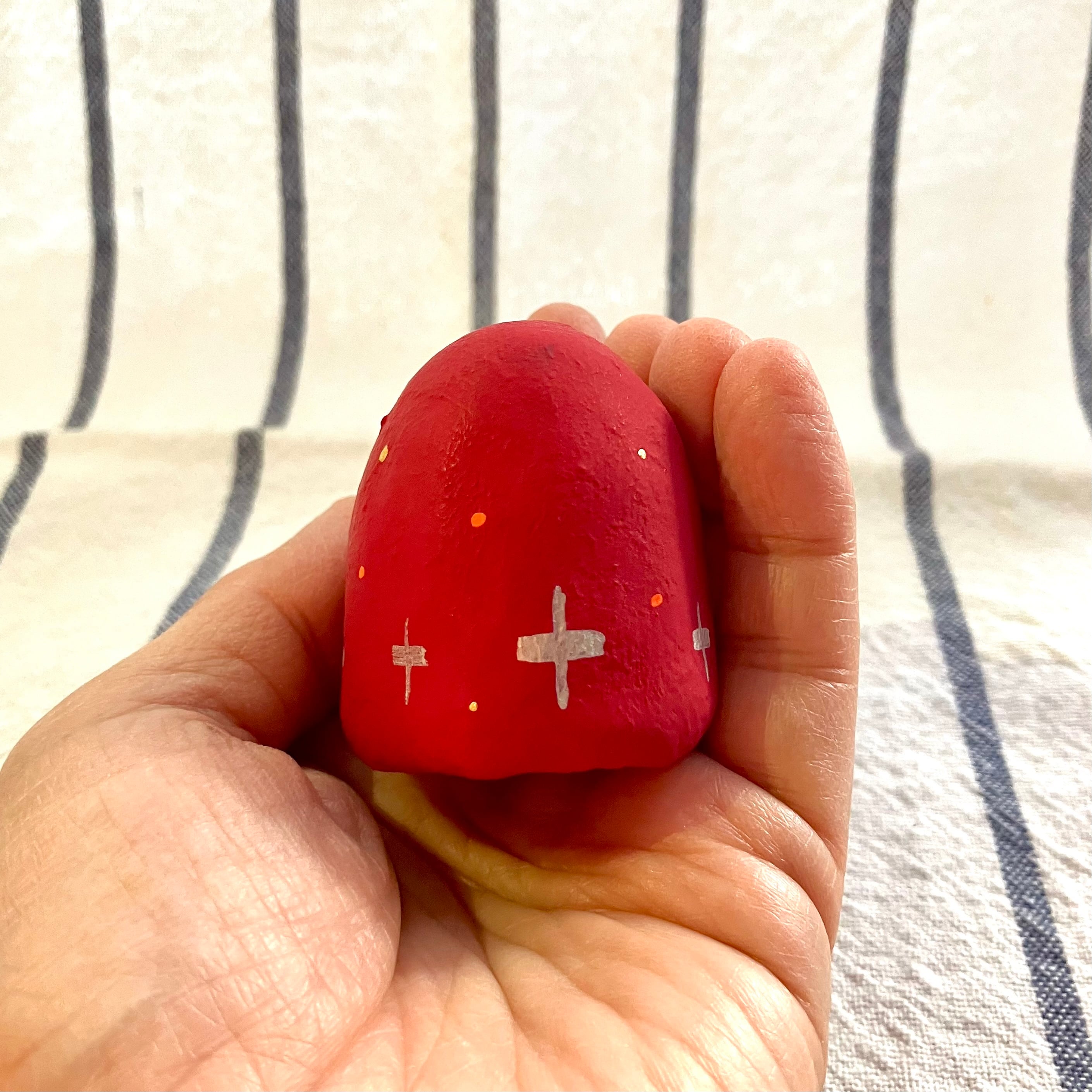 別バージョンで、キャンドルを持たせたレッドサンタさんも作っていますので、そちらもご覧下さると嬉しいです。手の平で優しく包める、手のひらサイズです。