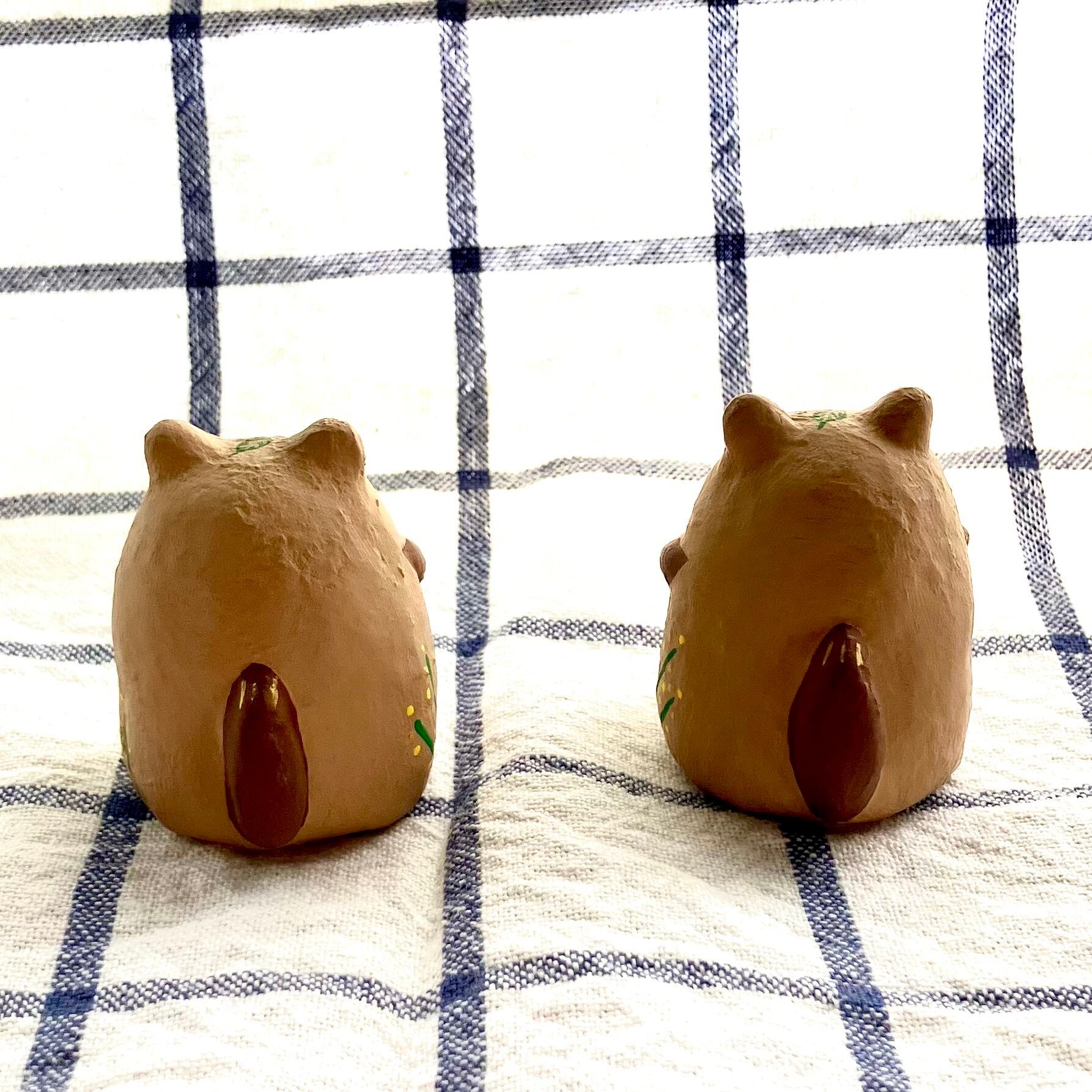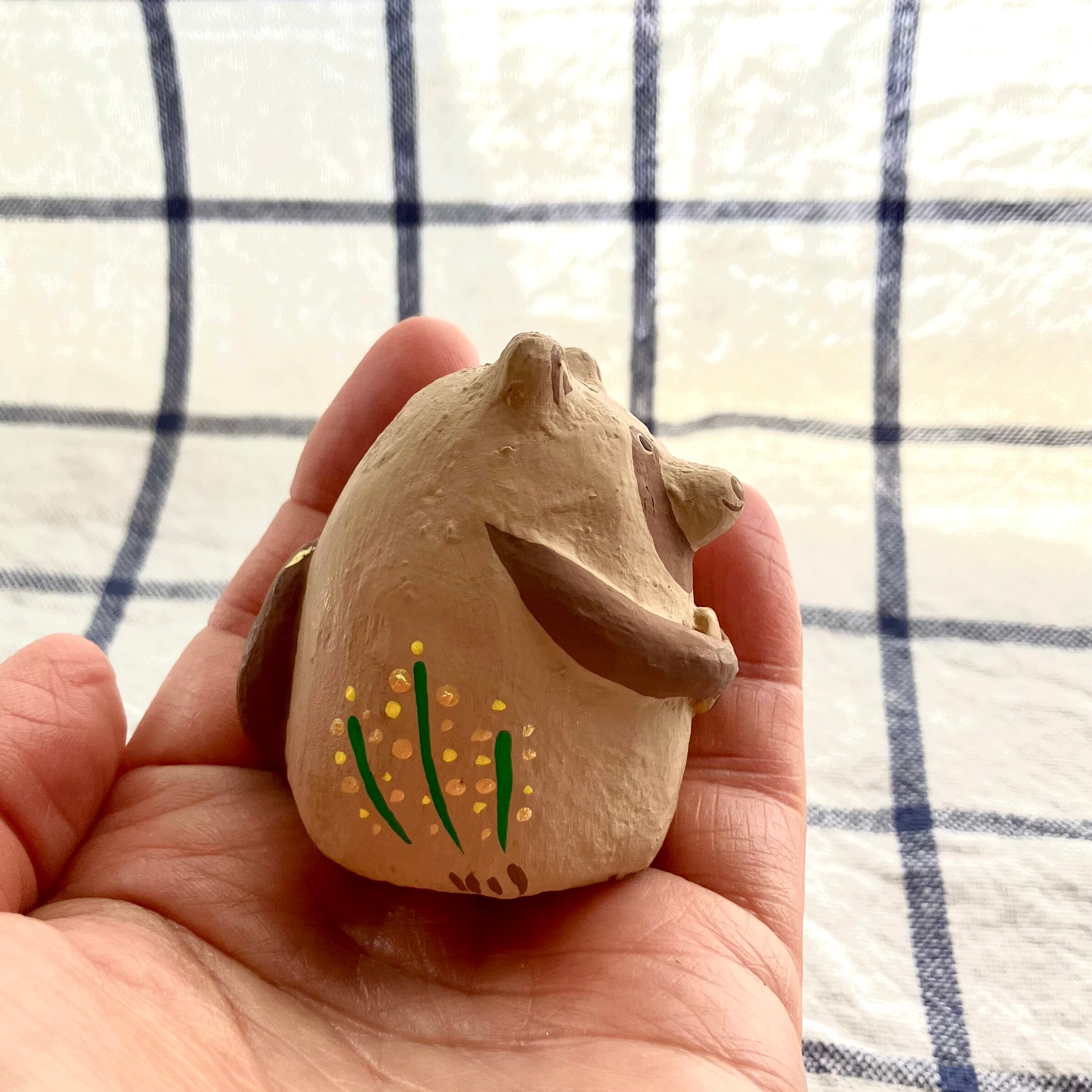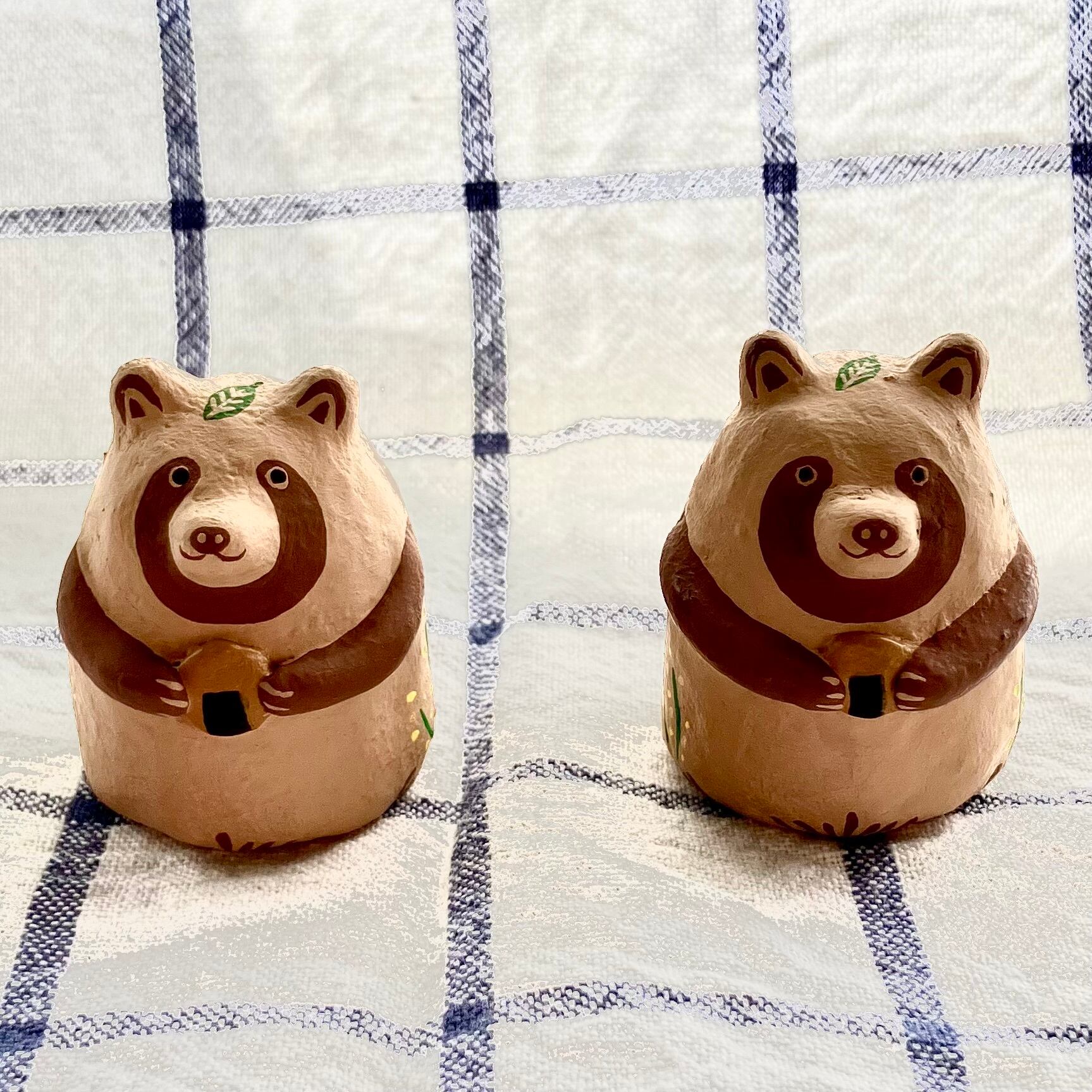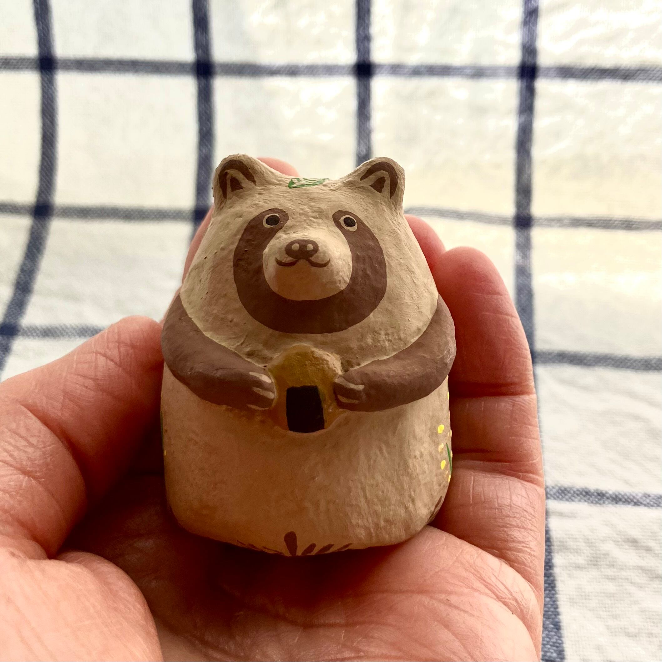 個人的に今タヌキの可愛さにハマっているので、タヌキちゃんの張り子を製作してみました。煎餅持たせるだけじゃ味気ないので、ミモザ風の模様も入れてラブリーに仕上げました♪