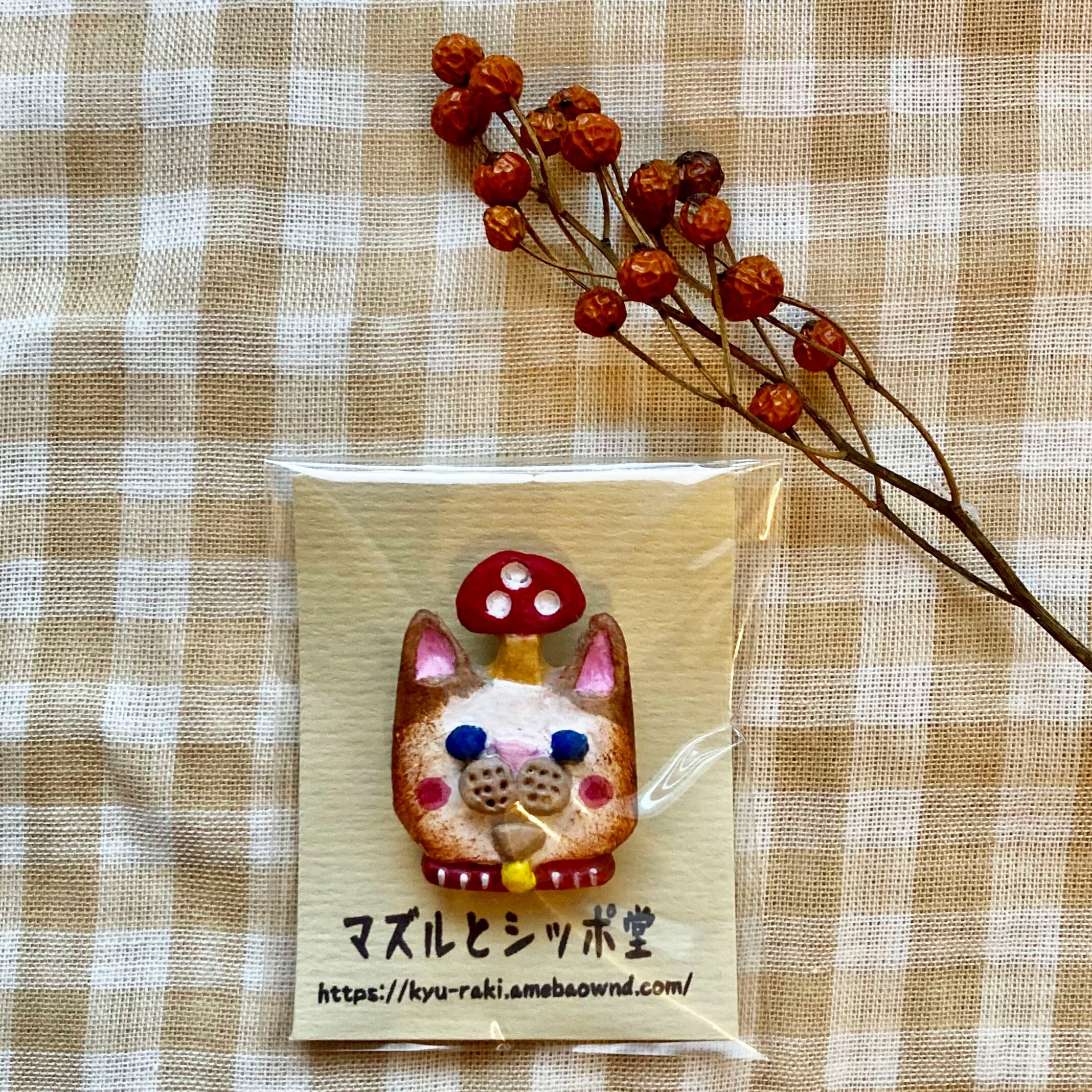 マズルがチャームポイントな、きのこ猫さんブローチです。