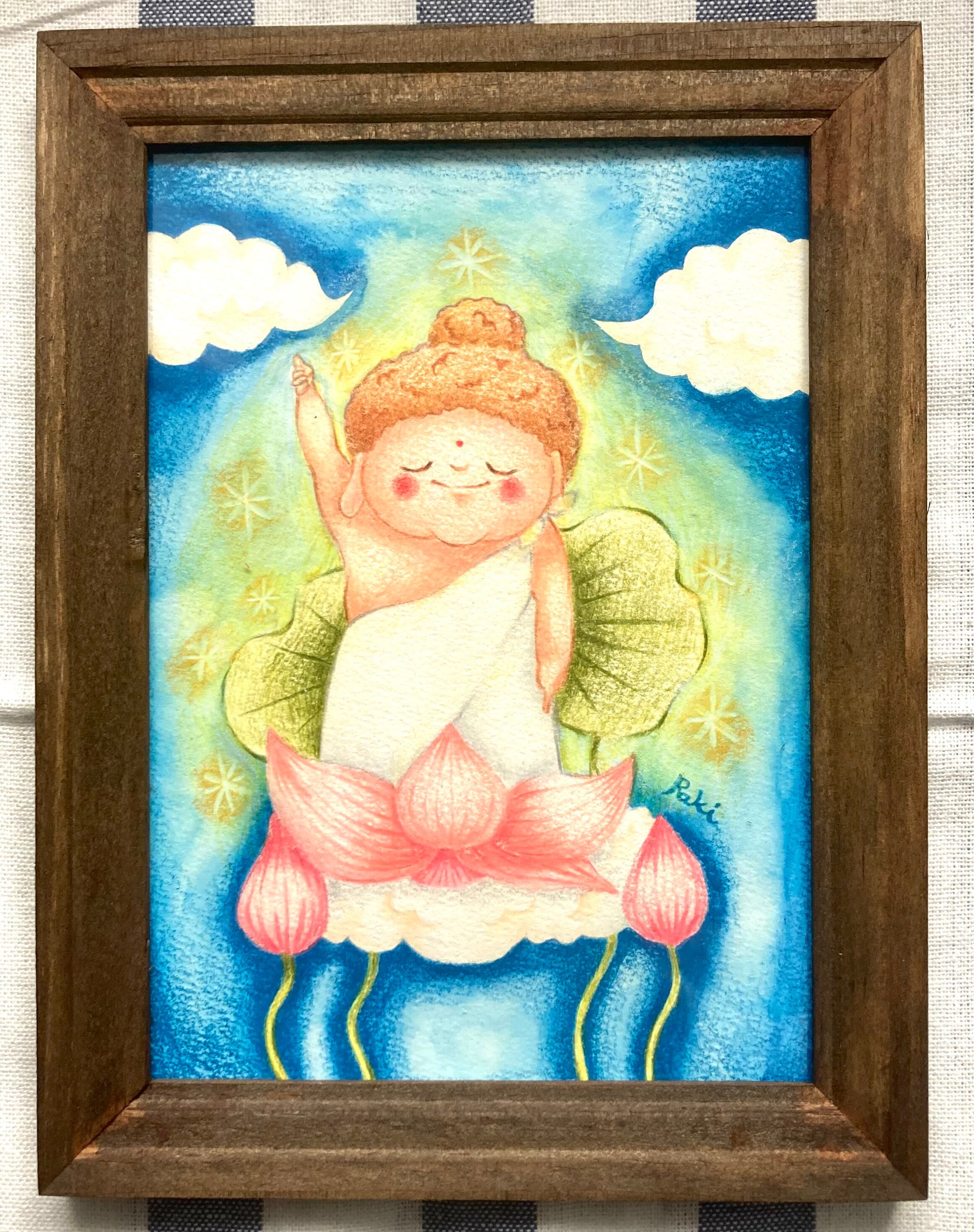 花まつりをテーマに又、新たにお釈迦さまを描きました、原画となります。