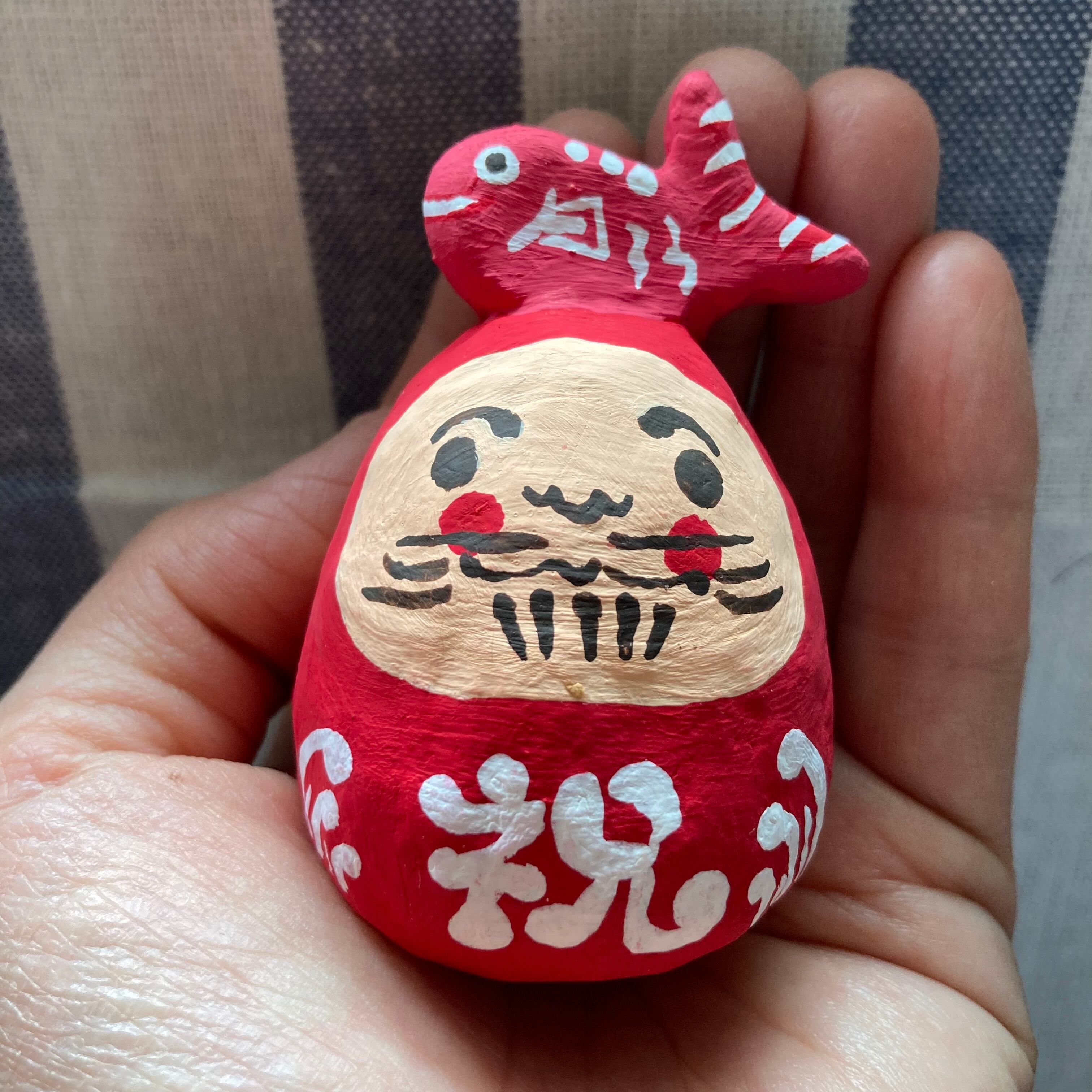 張り子の人形、鯛乗せ"祝"だるまちゃんです。手の平サイズ。