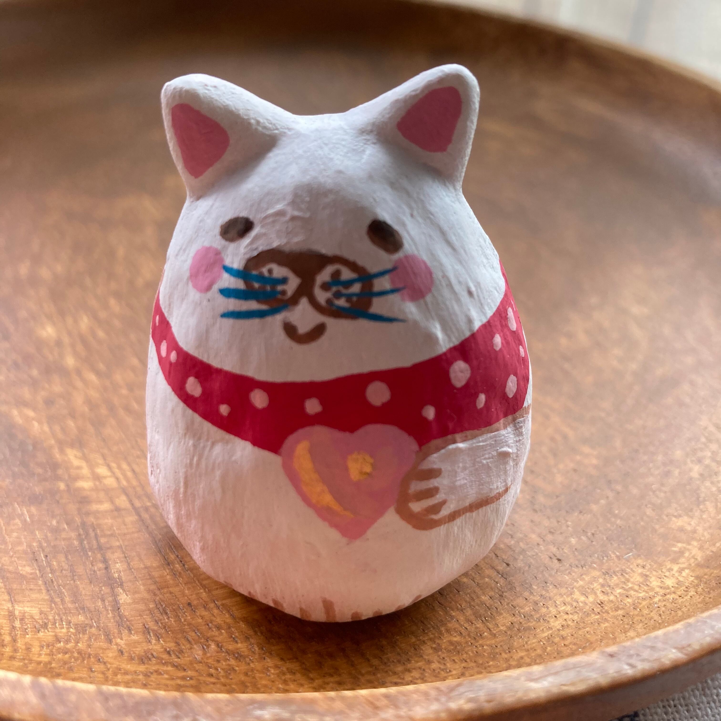張り子人形・右手招き猫ちゃんスタイ*ハート