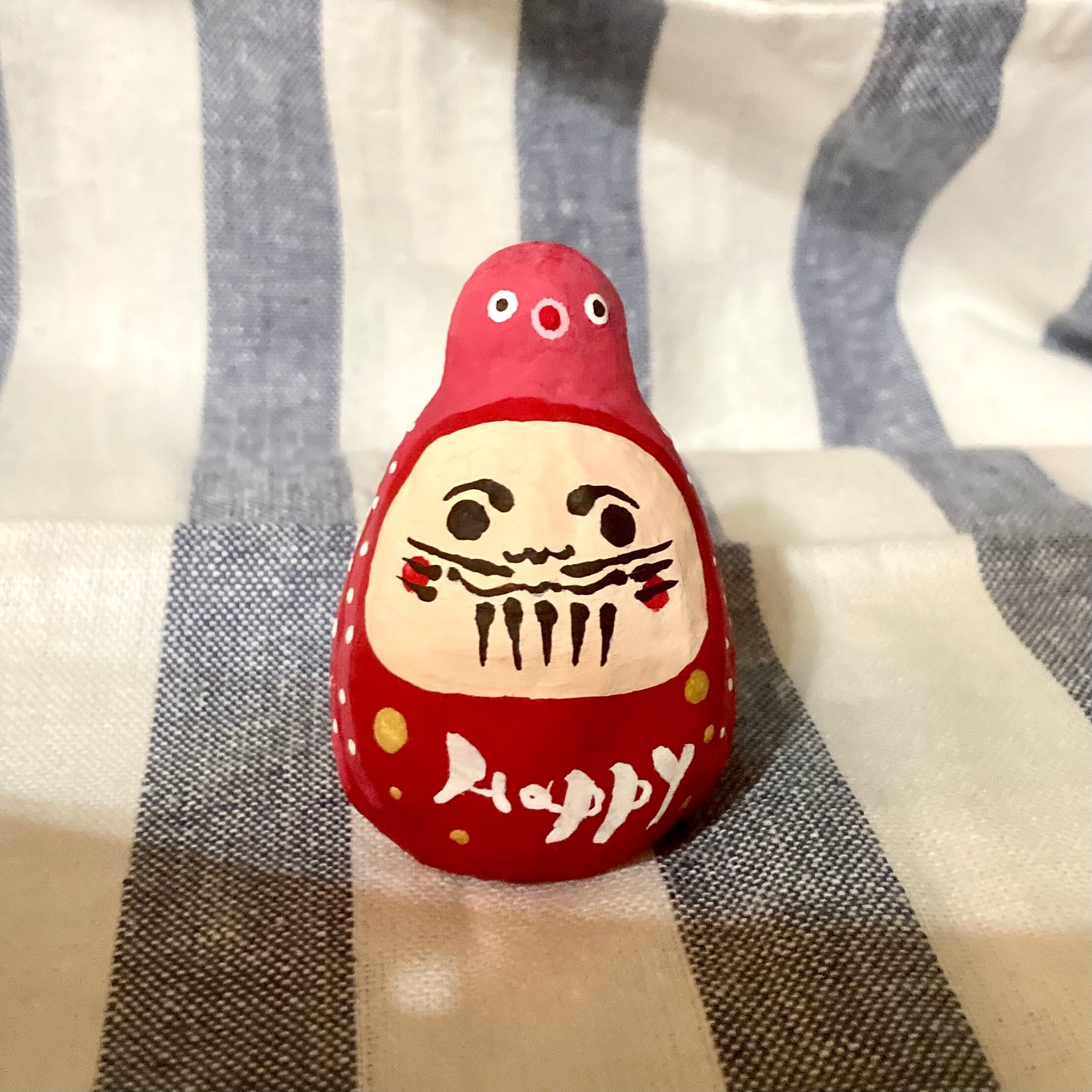 張り子の人形、タコ乗せ"Happy"だるまちゃんです。手の平サイズ。