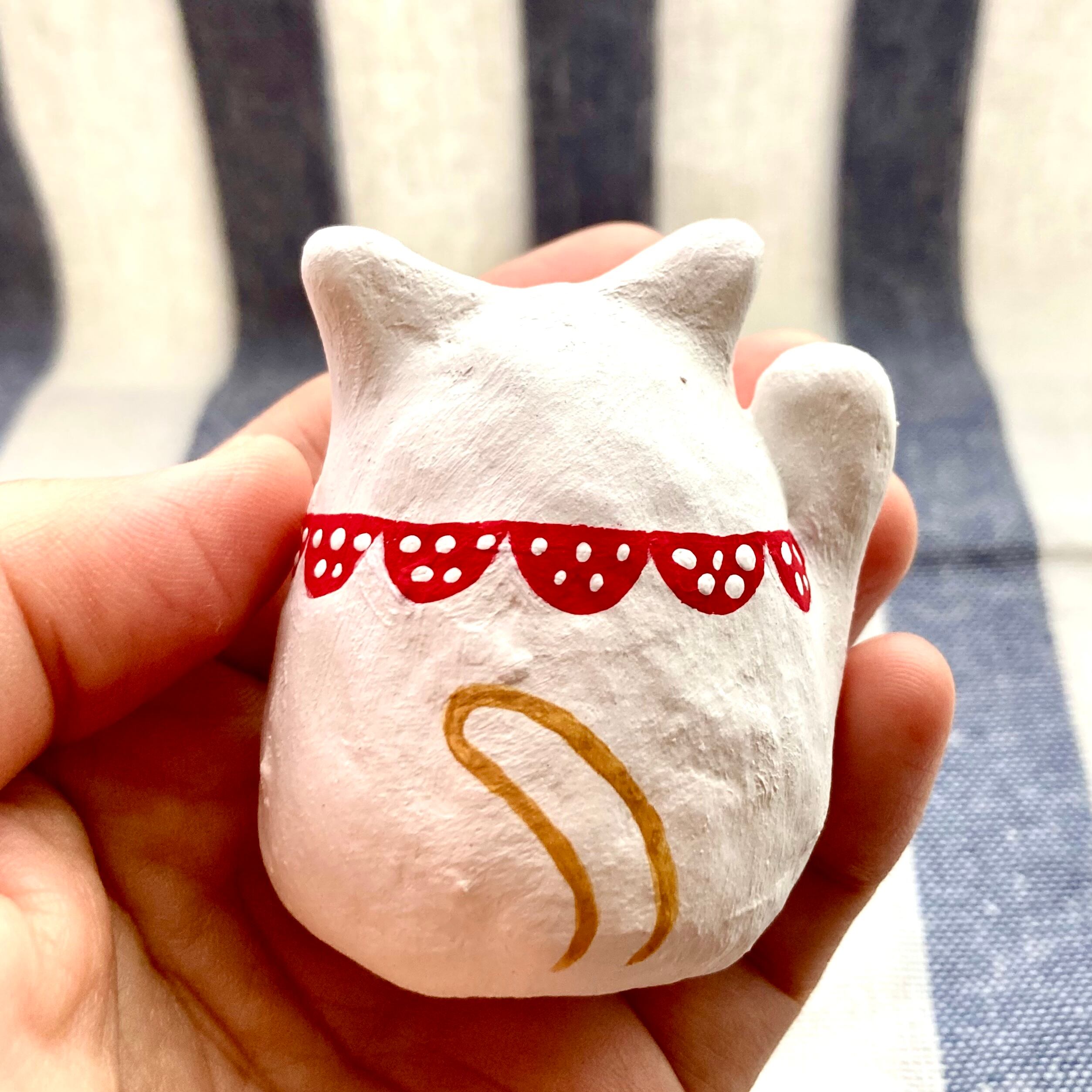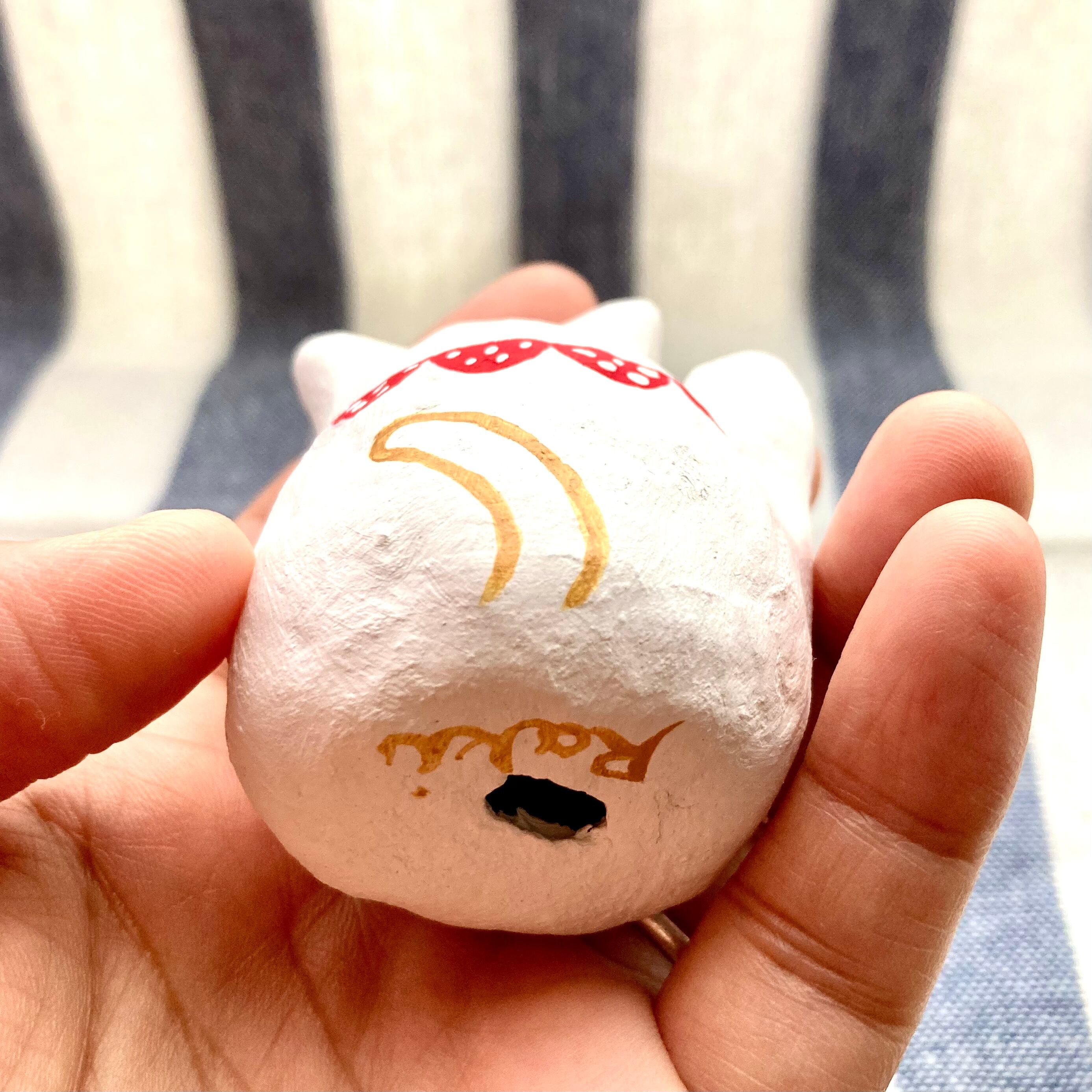 張り子の人形、右手招き猫ちゃんです。前回製作の招き猫ちゃんからのリニューアルバージョンです。手の平サイズ。