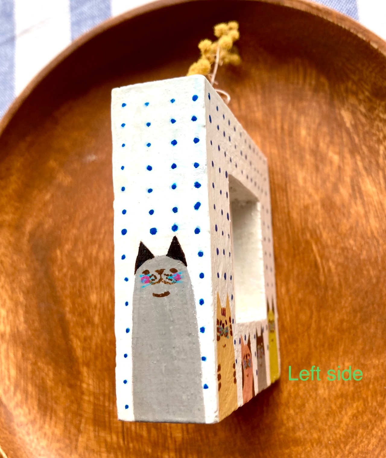 カエルと猫をテーマに作品を制作するイベント用に絵付けしたミニ花瓶です。
