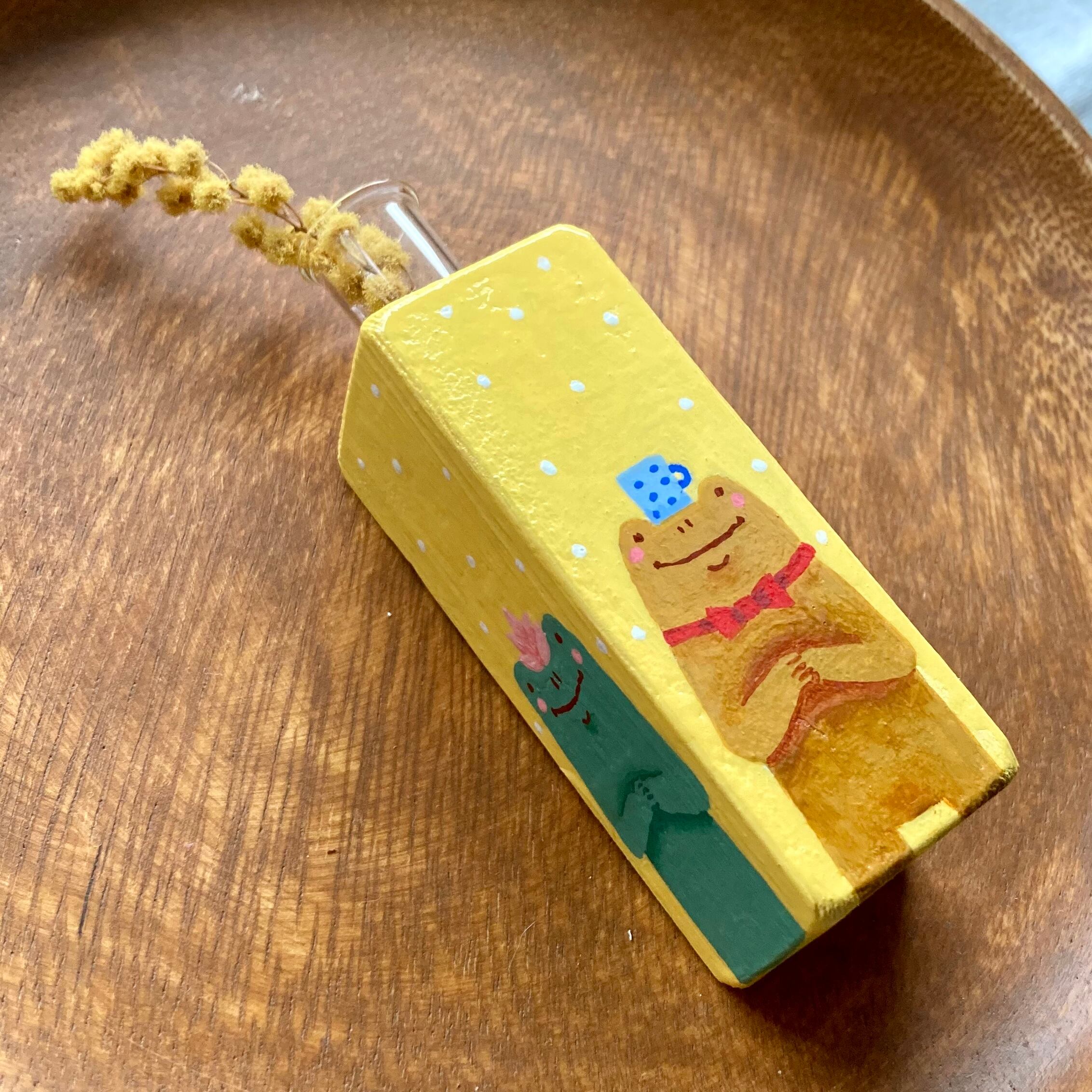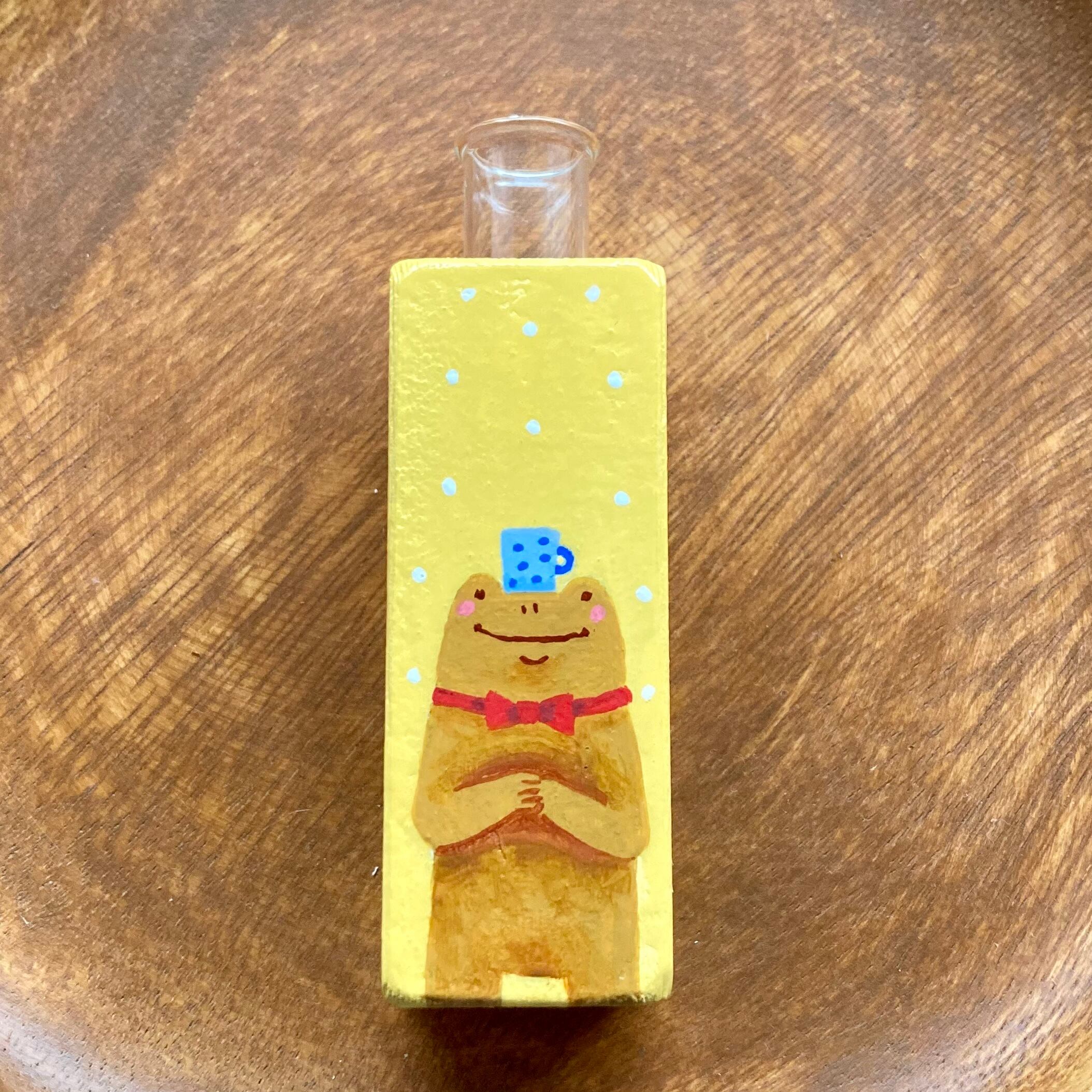 ユニークなかえるをペイントした、ミニ花瓶です。