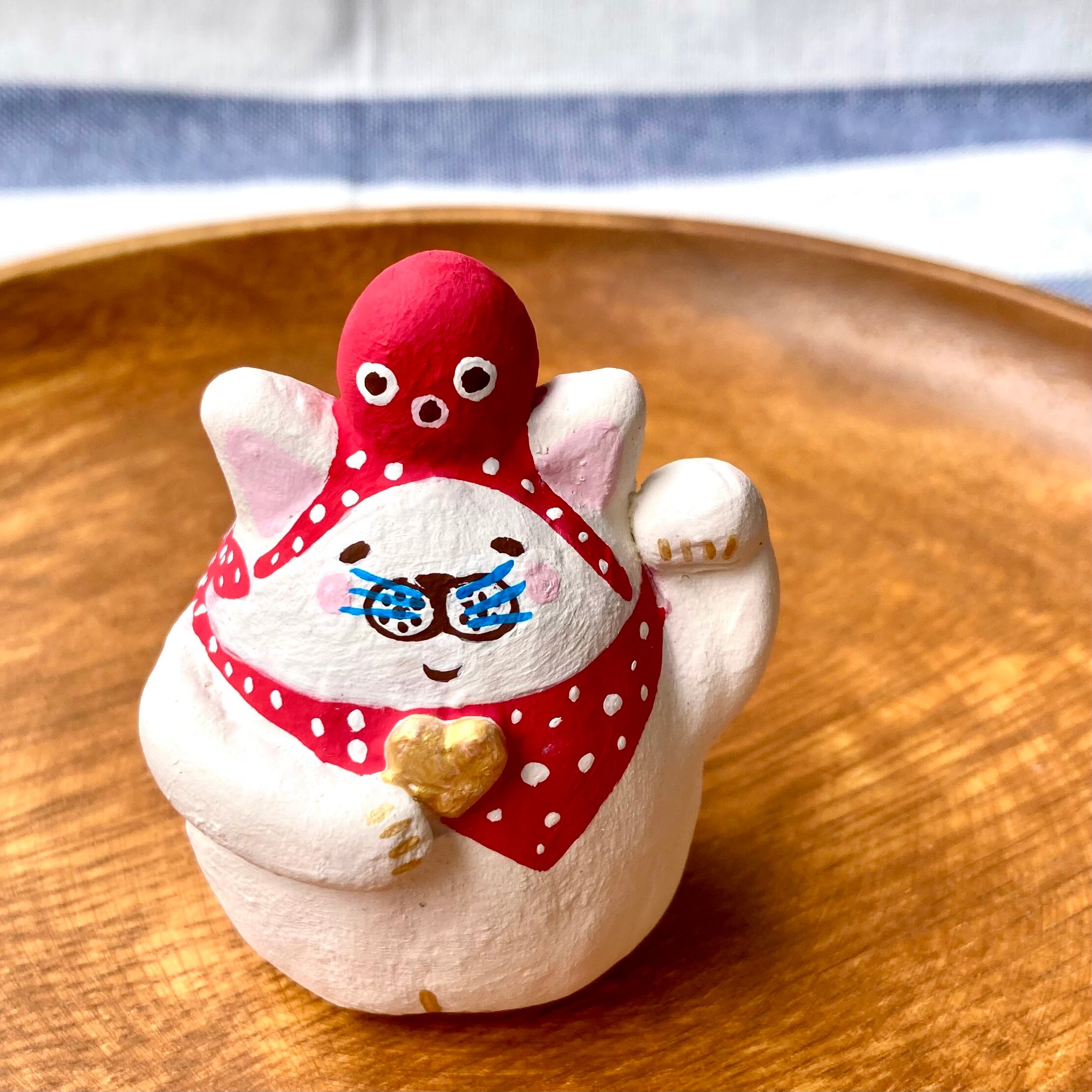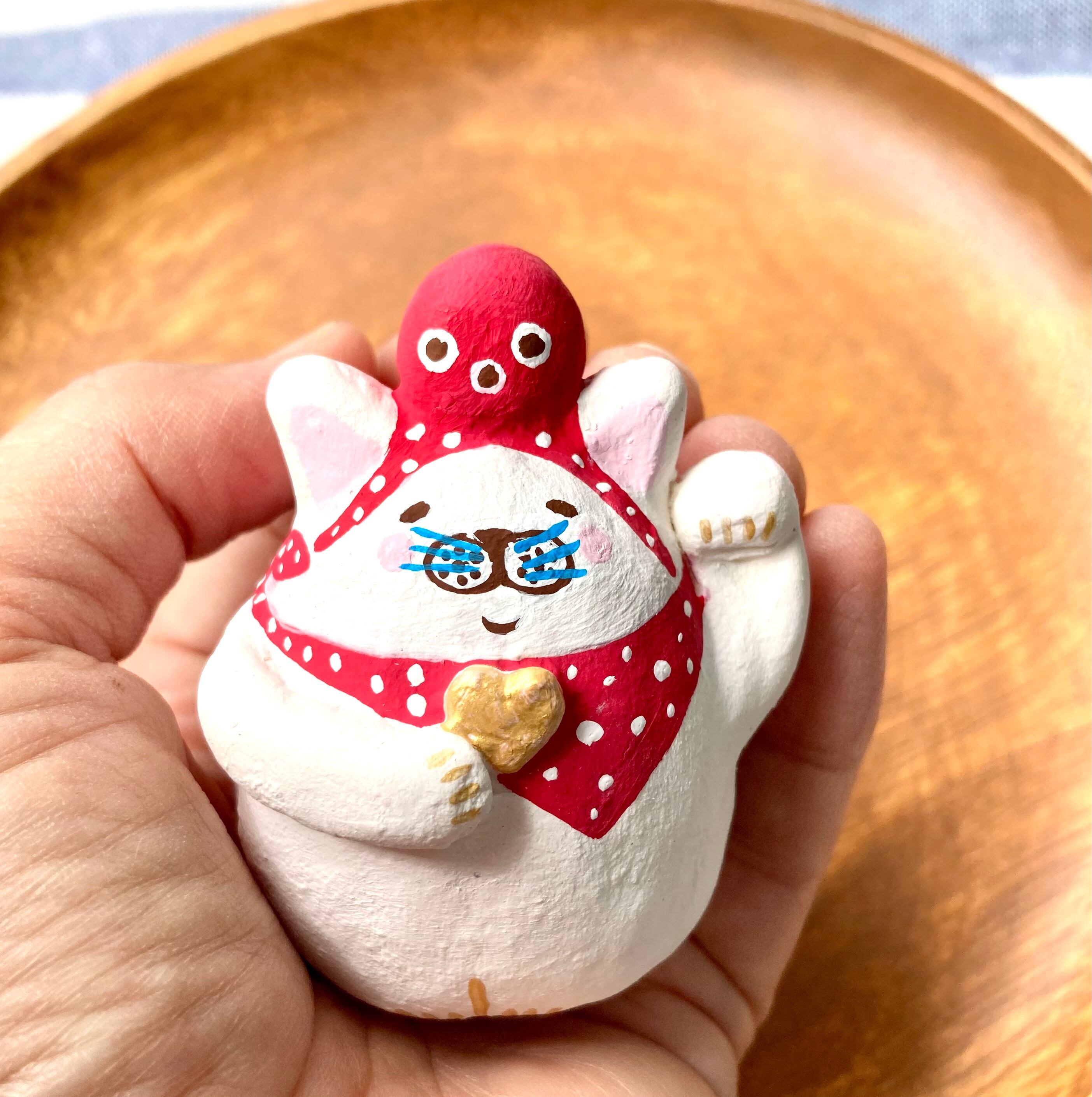 縁起物!張り子人形、タコ乗せ左右招き猫ちゃんです^ ^ 手の平で優しく包める、手のひらサイズです。