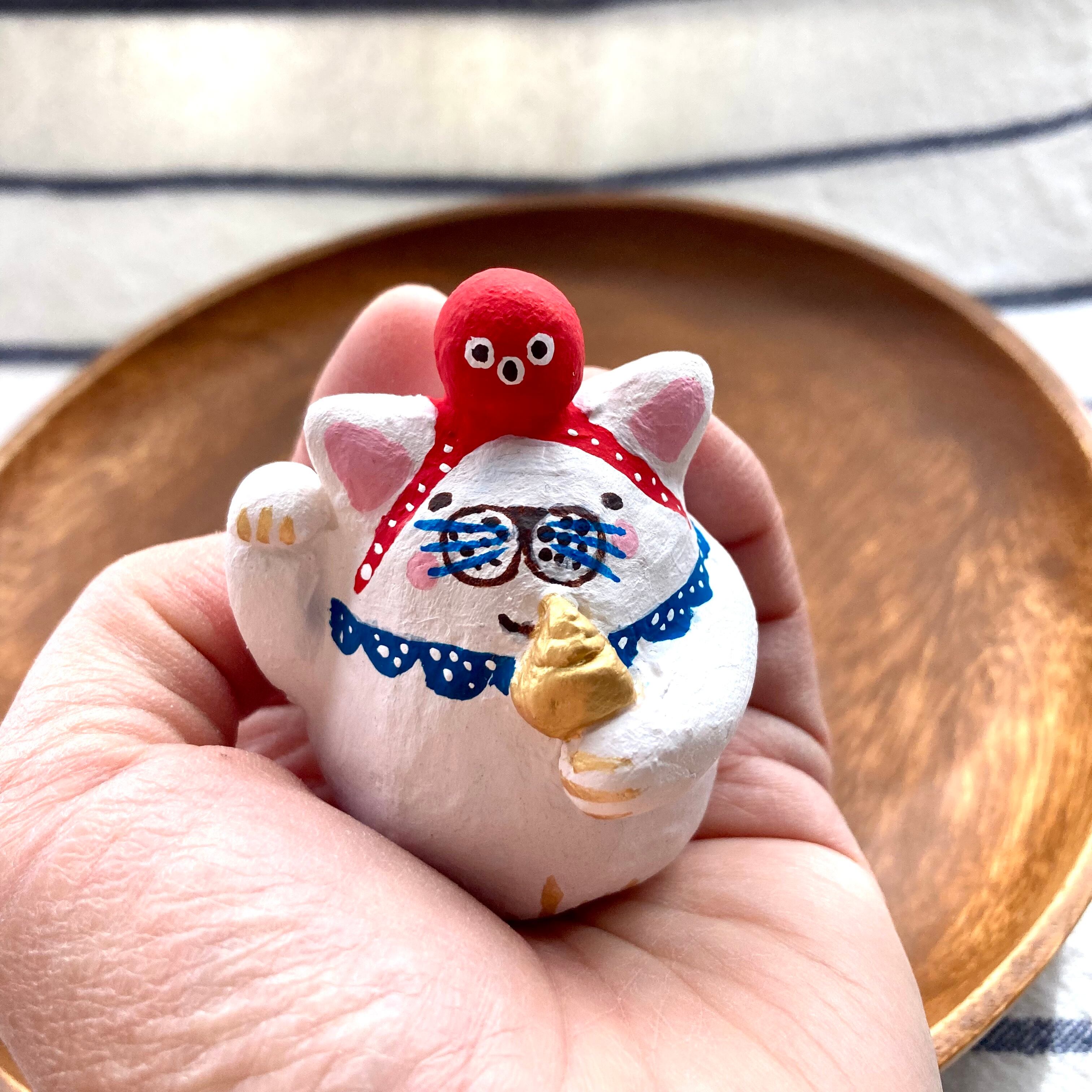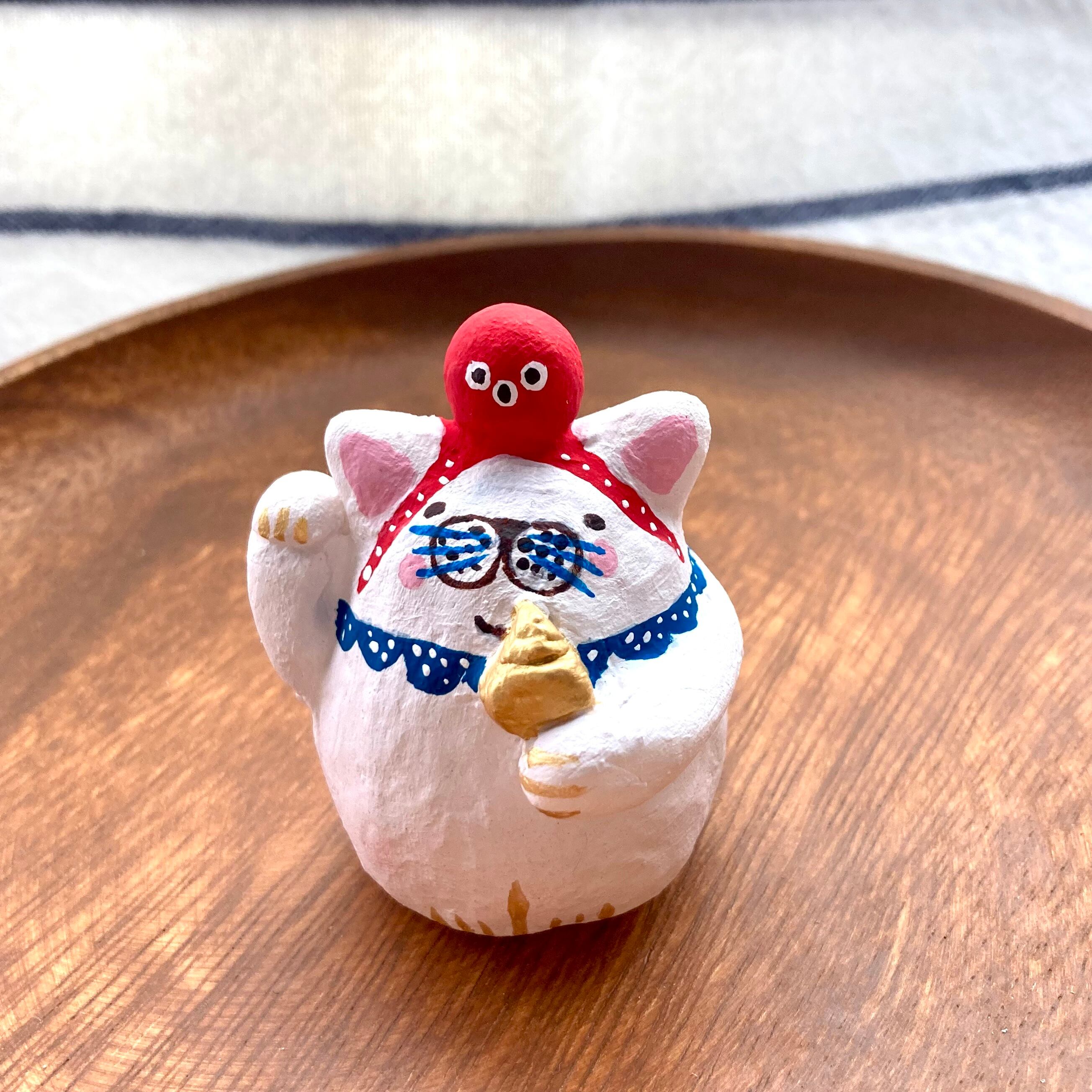 張り子☆タコ乗せ右手招き猫ちゃん☆宝珠