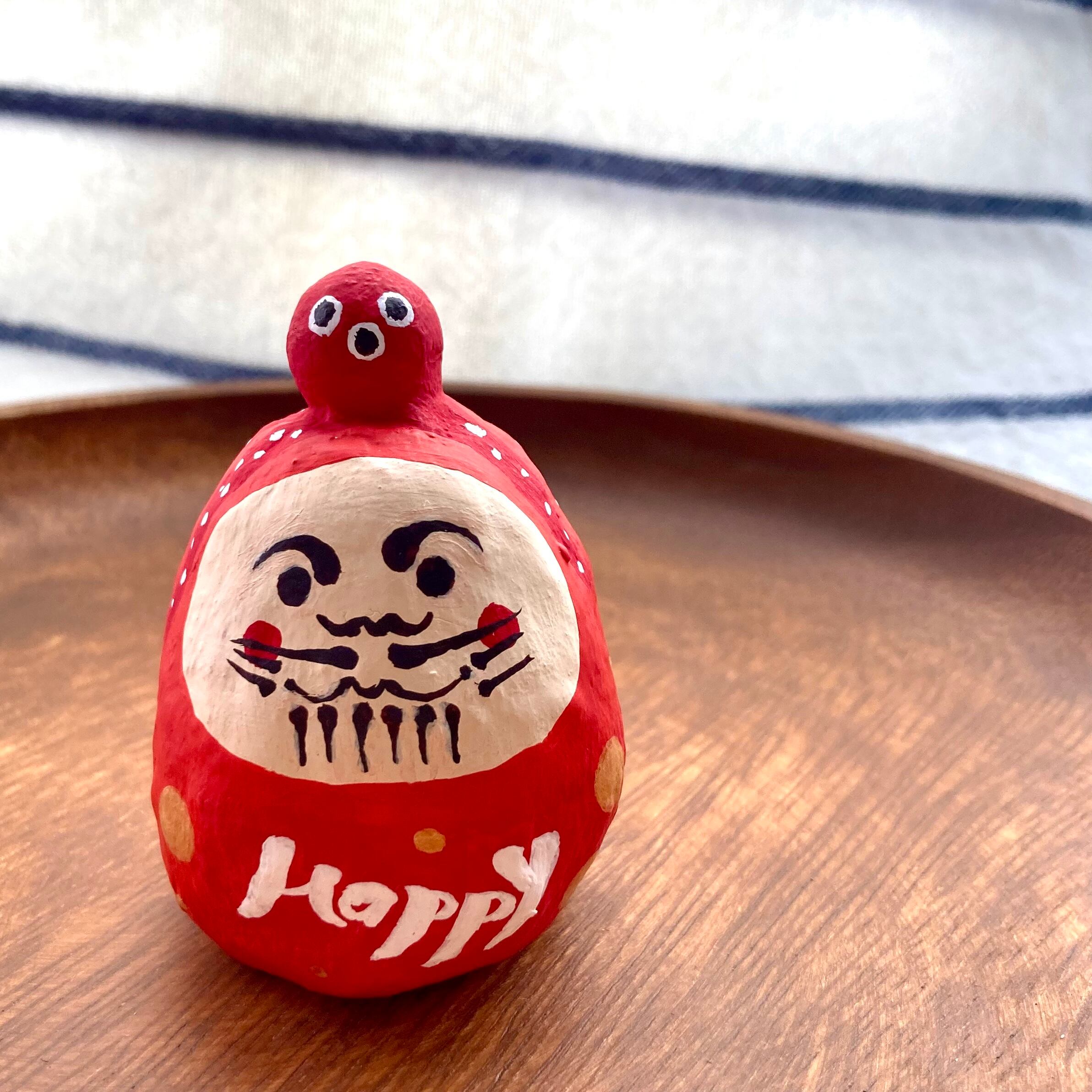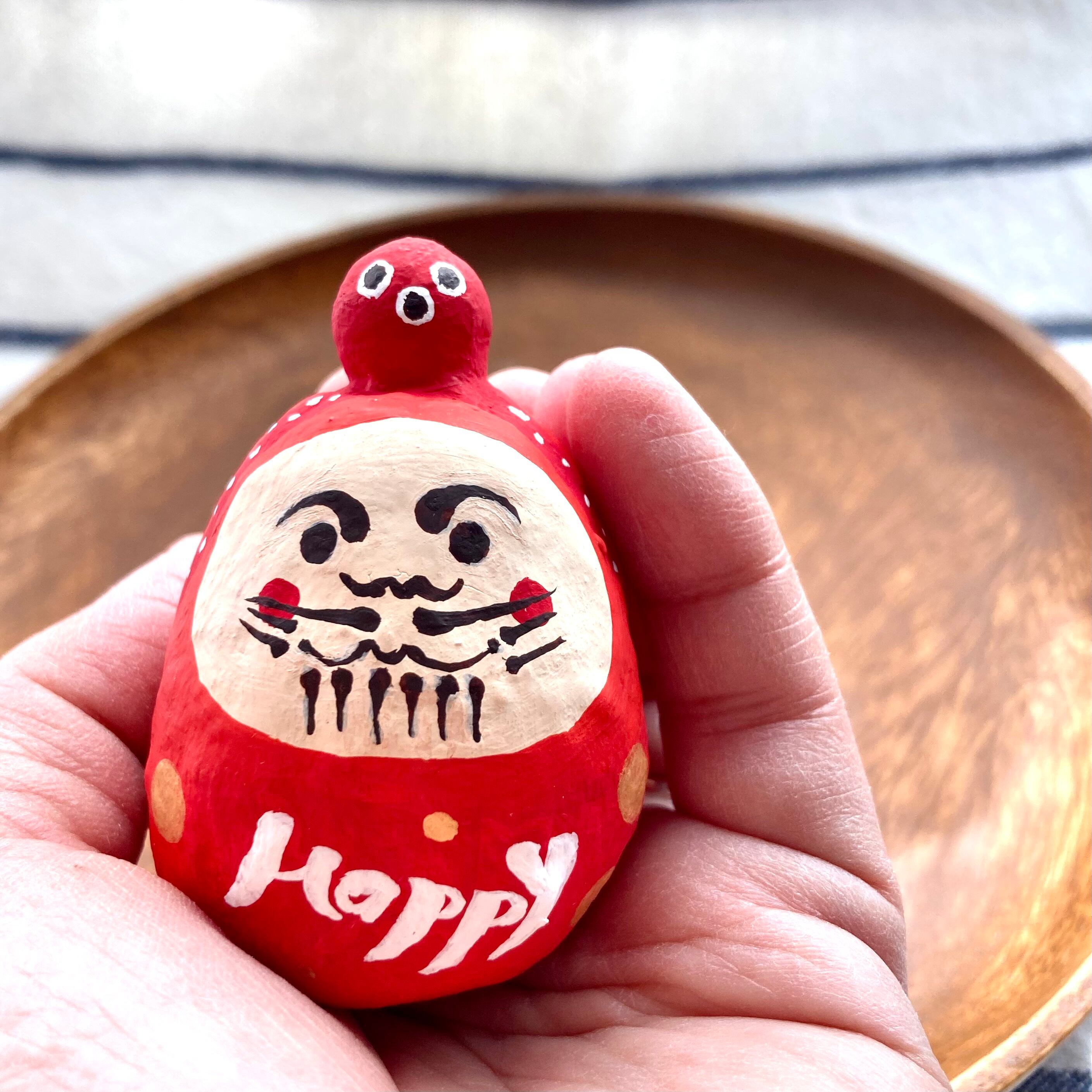 張り子の人形、タコ乗せ " Happy " だるまちゃんです。手の平サイズ。