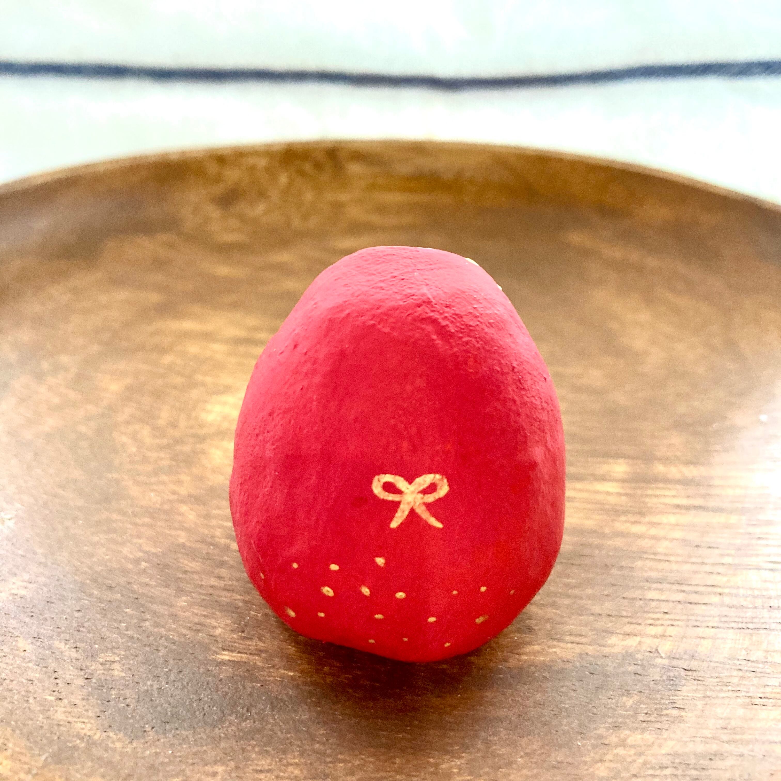 張り子は、粘度などの型の上に紙を何重にも貼り重ね→乾燥→二つに割理、型を抜く→元の形に貼り合わせ→再度紙を貼り付け→胡粉塗装→アクリル着色。以上の工程で製作しているものです。一つ一つ丁寧に手作業で仕上げています。