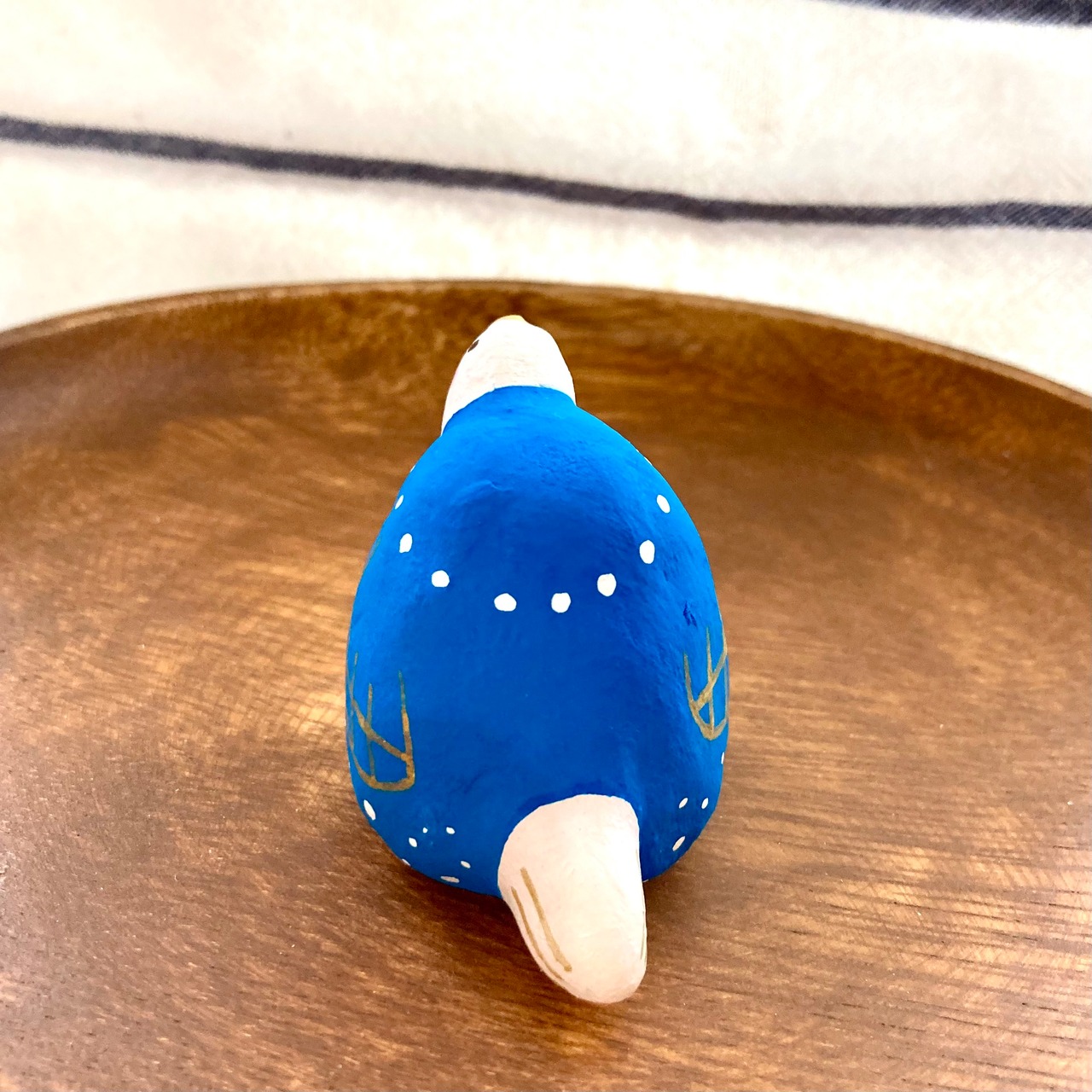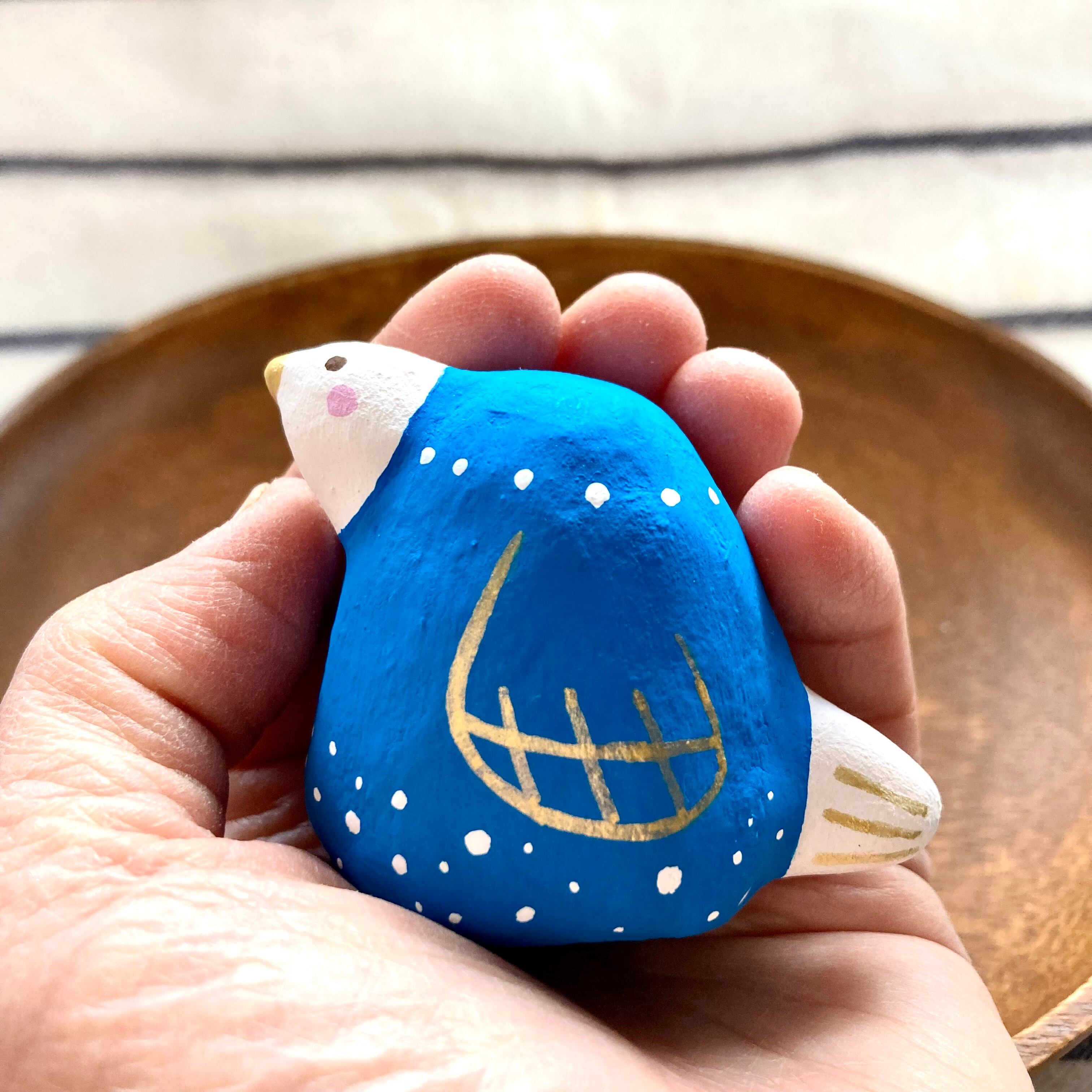 昨年好評だった張り子の人形、幸せの青いトリさん。