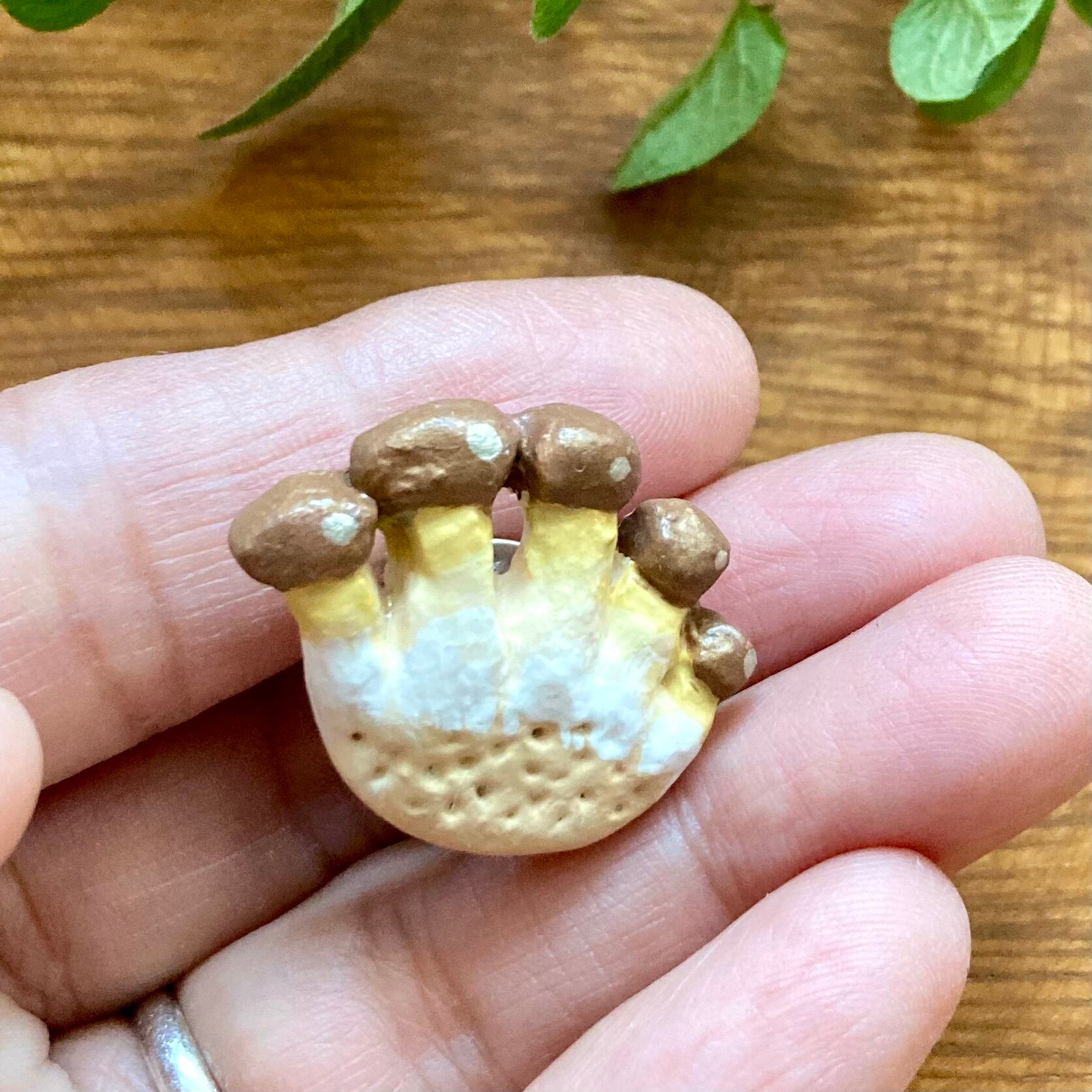 あらら、こんなところにしめじ⁈…と思ったらピンバッチなのね。みたいになる事を想像しながら、ウキウキ作ってしまいました。