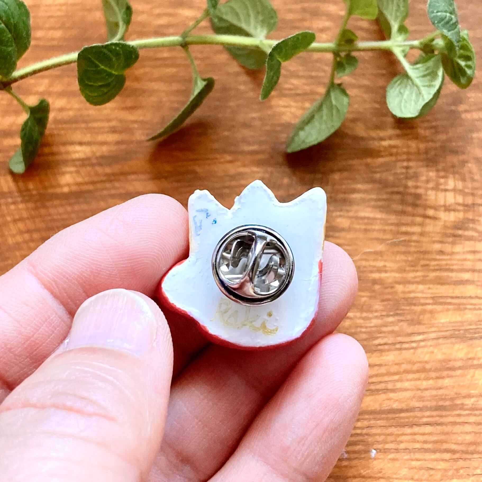 裏面素材:ピンバッチ用パーツ、レジン、アクリルガッシュ