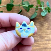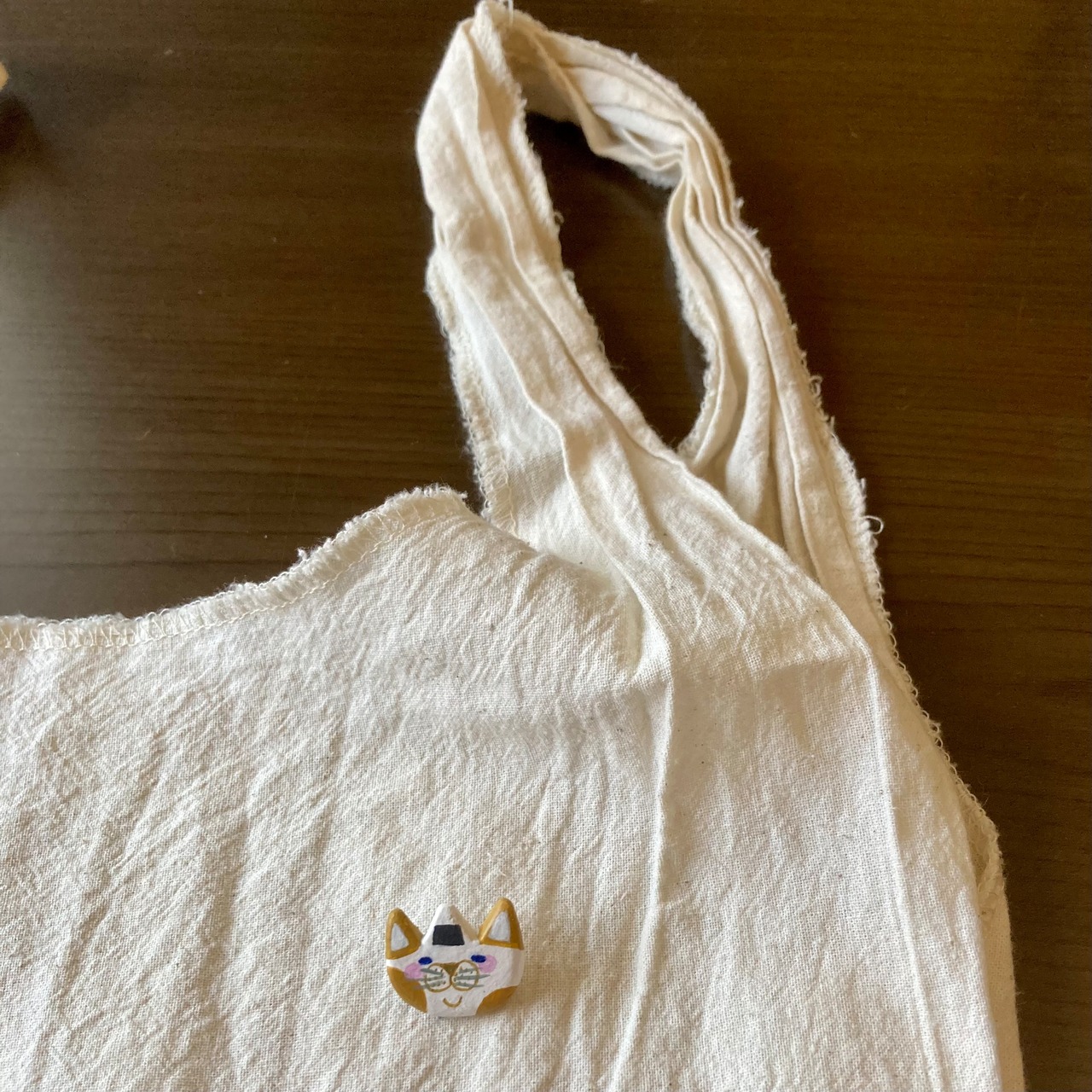 おにぎりを乗せてニッコリ笑顔の猫さんピンバッチを作りました。さりげなくバッグや帽子、服につけて、ほのぼのお洒落を楽しんで下さいね。