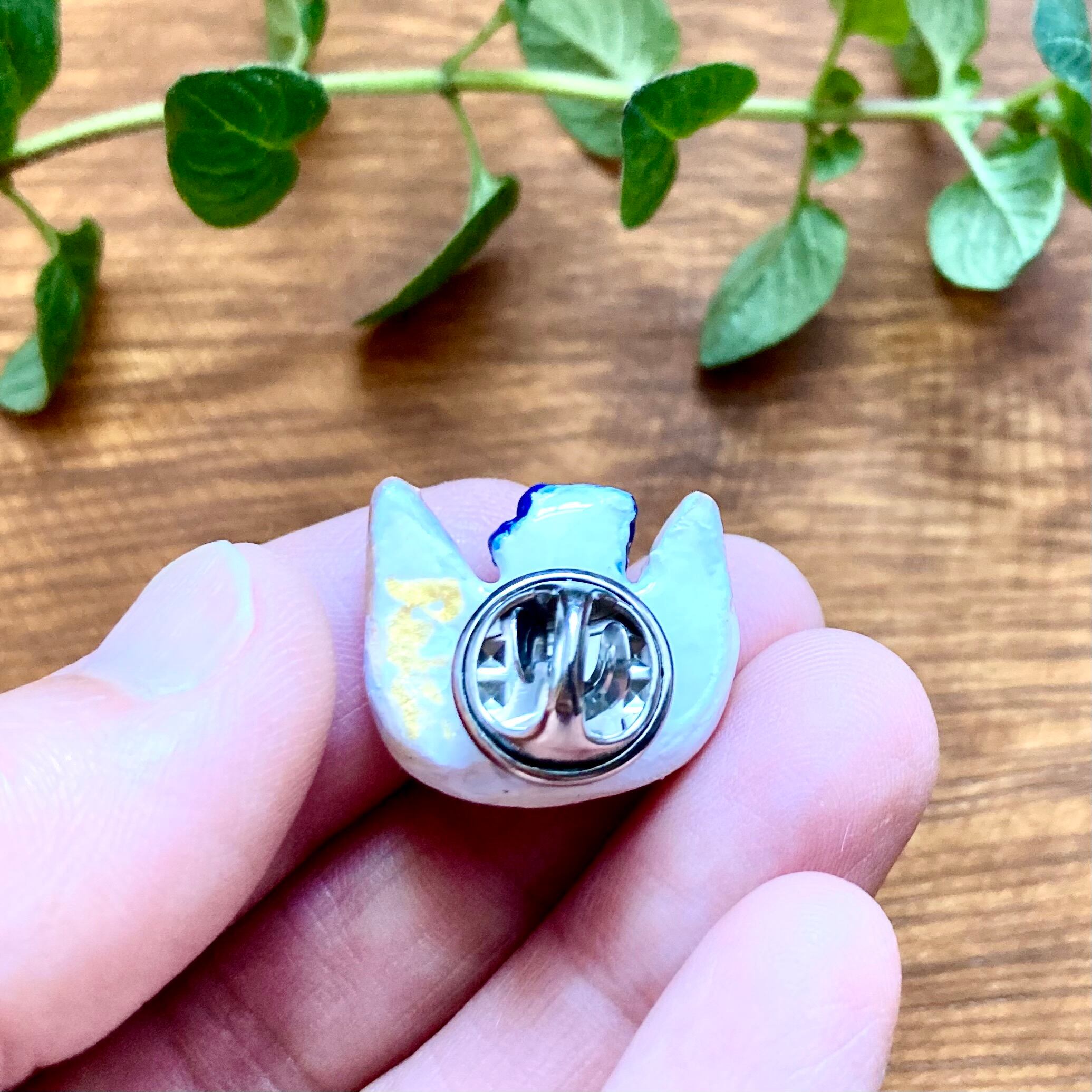 頭にコーヒーカップを乗せて、お茶しませんか?と誘ってくれてる猫さんのピンバッチを作りました。コーヒーブレイクのお供に是非混ぜてあげて下さい。バッグや帽子につけると、かわいいアクセントになるでしょう。猫好きの方にはたまらないアイテムです♪