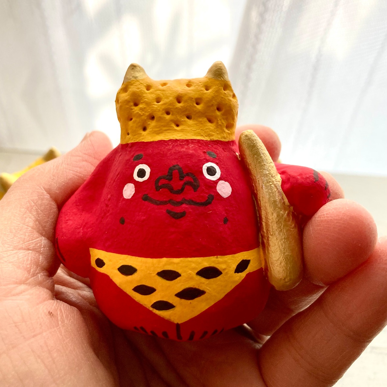 ニューバージョンの張り子の人形” 鬼に金棒 ” 赤鬼くんです。手の平サイズ。