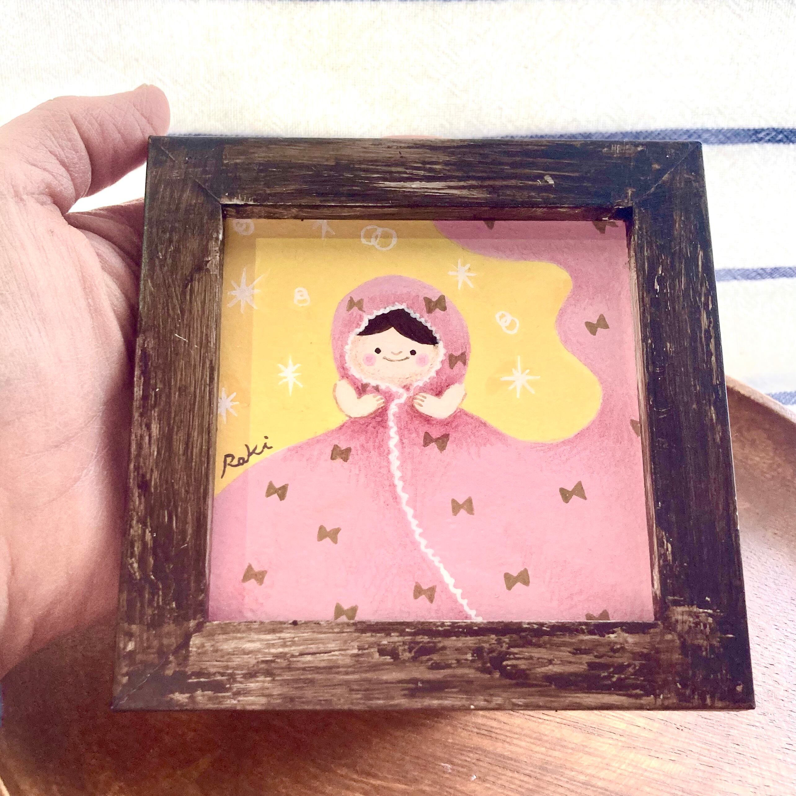 ミニ額に入った小さな作品です。写真立て式の額なので、壁にお飾り頂いても、棚やテーブルにもお好きな場所にお飾り頂けます。