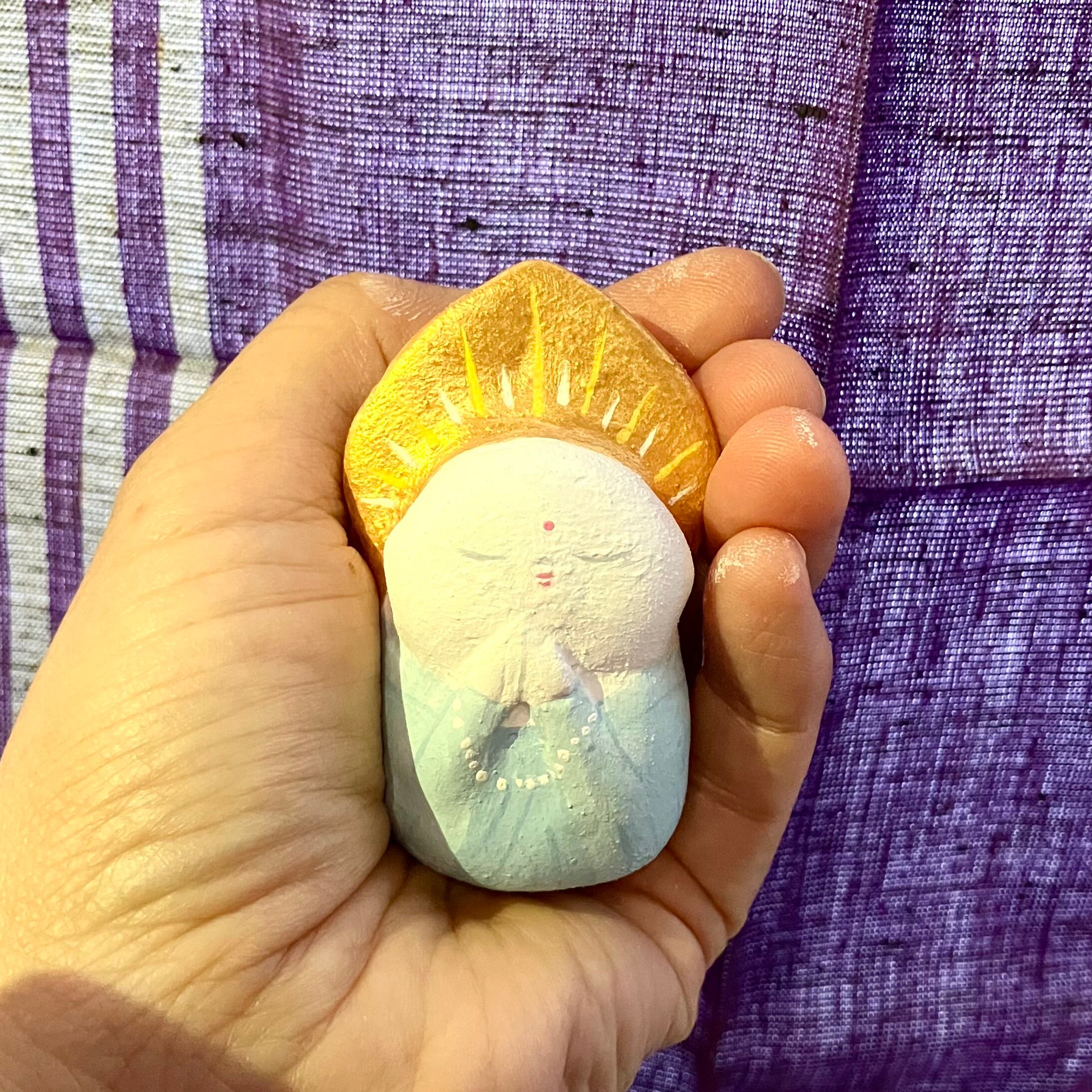 硬い石粉粘土ではありますが、温かみもあり優しい表情のお地蔵様となりました。