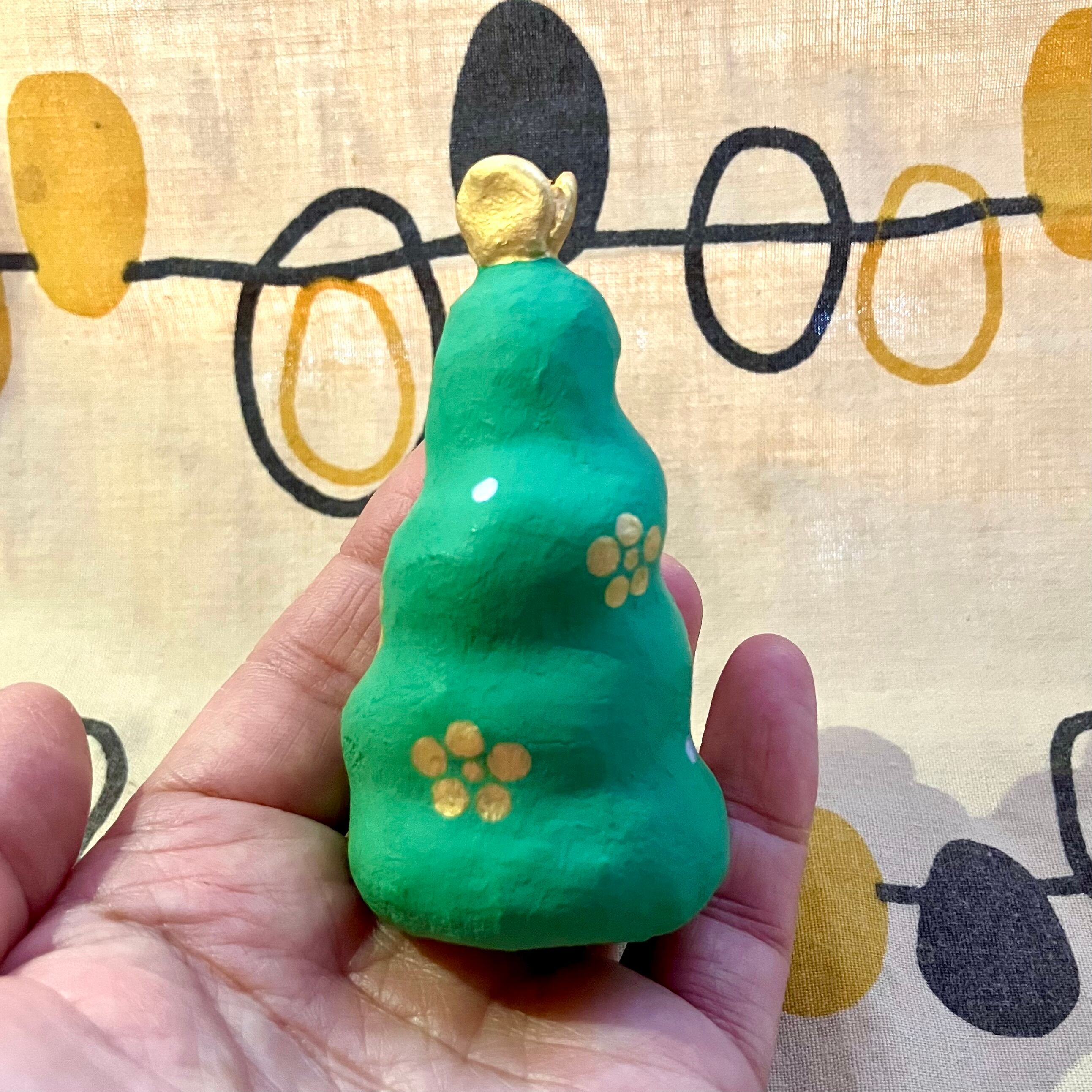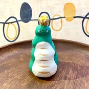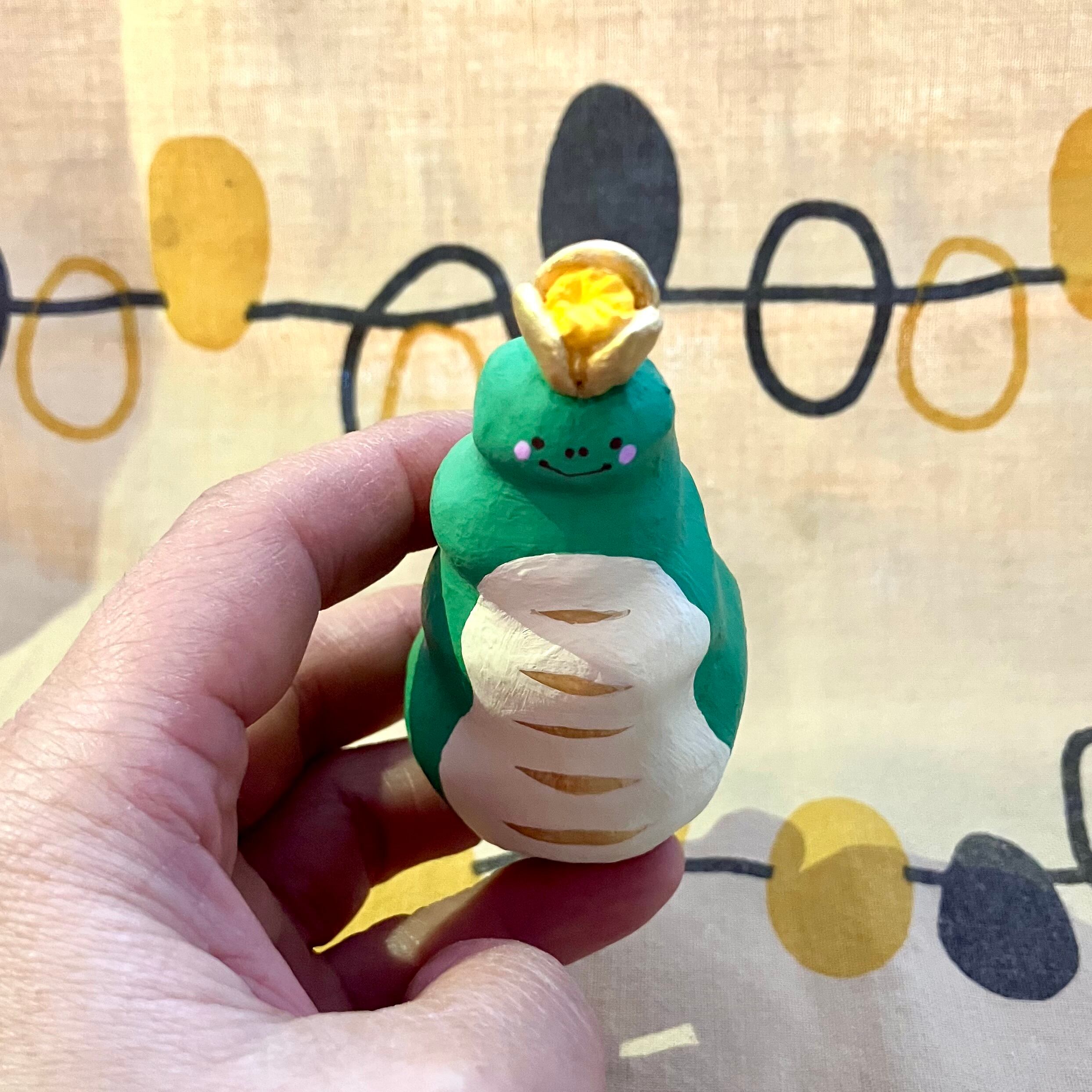 2025年の干支は巳。干支張り子の緑バージョンです。ゴールドの水仙を乗せた巳ちゃんを作りました。トグロを巻いた子ですが、おどろおどろしくなく可愛く少しデフォルメした子に仕上げてみました。